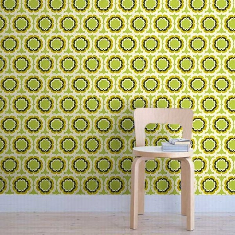 貼ってはがせる シール壁紙 Hatte Me ハッテミー リメイクシート 復刻ヴィンテージ柄 65cm 2 6mサイズ Fkvt 抹茶 X イエロー X ブラウン 壁紙屋本舗